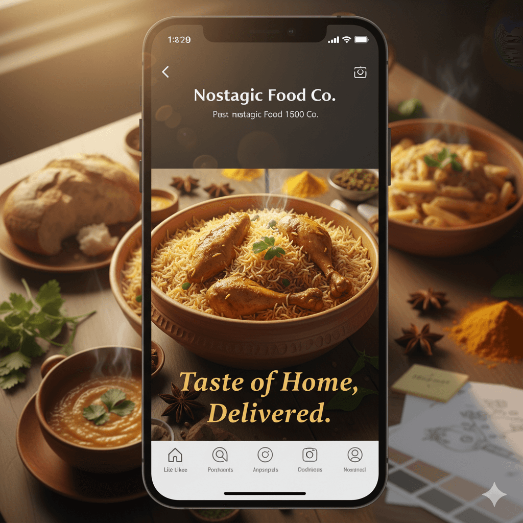 Nostagic Food Co. sought to build a distinctive presence in the highly competitive food delivery space. The objective was to highlight the emotional and cultural value of food that reminds people of home while driving measurable engagement and conversions. Our role included full-cycle campaign development — from content strategy and ad design to analytics and community engagement — ensuring a consistent tone across all social channels.